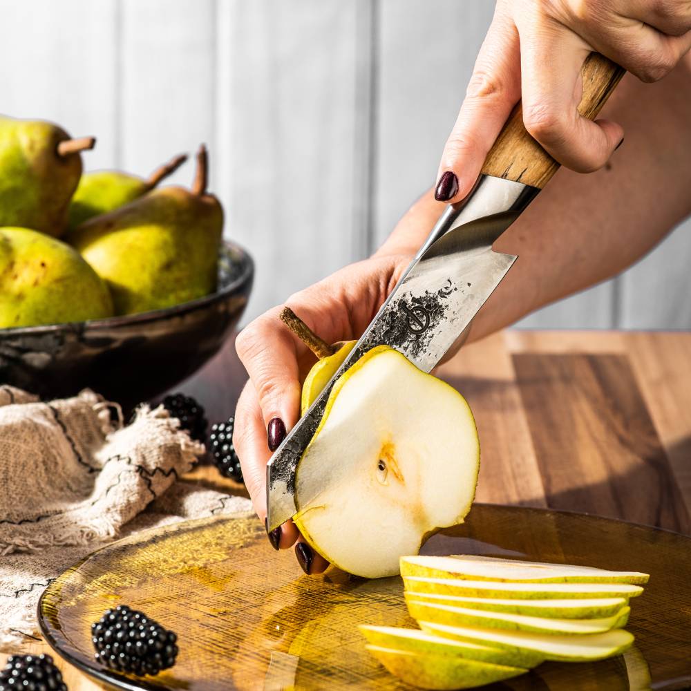 - Preferably use a wooden or plastic cutting board to prevent the blade from being damaged and to ensure that the knife stays sharp longer.