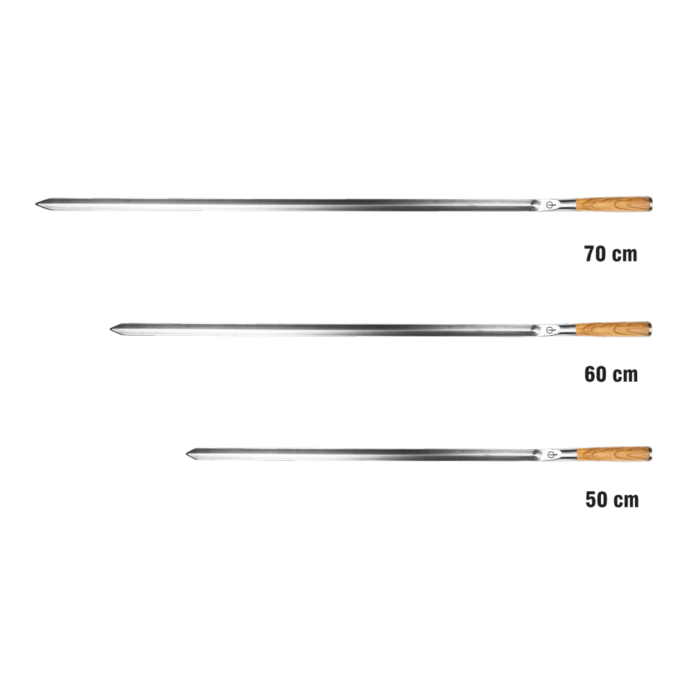 - Length skewer excluding handle: 50, 60, 70 cm