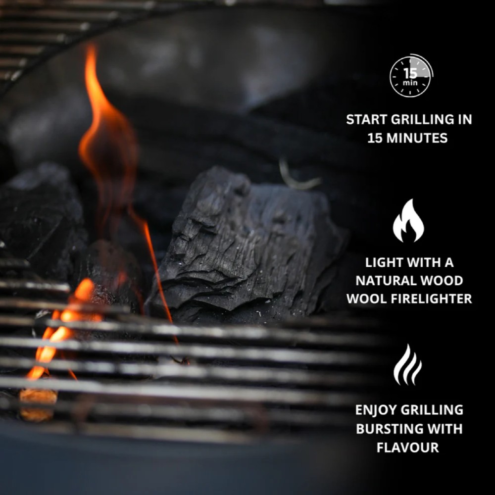 Our exclusively large chunks provide a consistent, long-lasting burn time of up to 4 hours on an open fire, making it perfect for any type of grill. And with a quick 15-minute start time, you'll be ready to cook in no time.