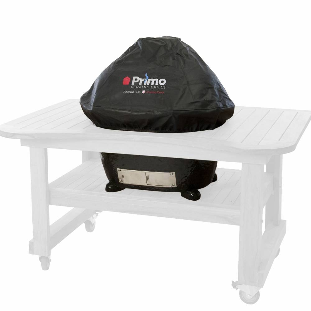 The Primo grill cover features a vented black vinyl grill cover with an embroidered Primo logo on the front. This durable cover will help keep your grill protected from the elements when the grill is not in use. This cover is weatherproof and protects against UV and mould/mildew.